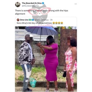 Nollywood actrees Omobewaji Oyediji has claimed that there’s nothing wrong with skit maker Nons Miraj’s surgically acquired body except for her knocked knees.
