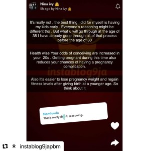 Reality TV star, Nina, has written from experience, on why you should have your kids in your 20s.